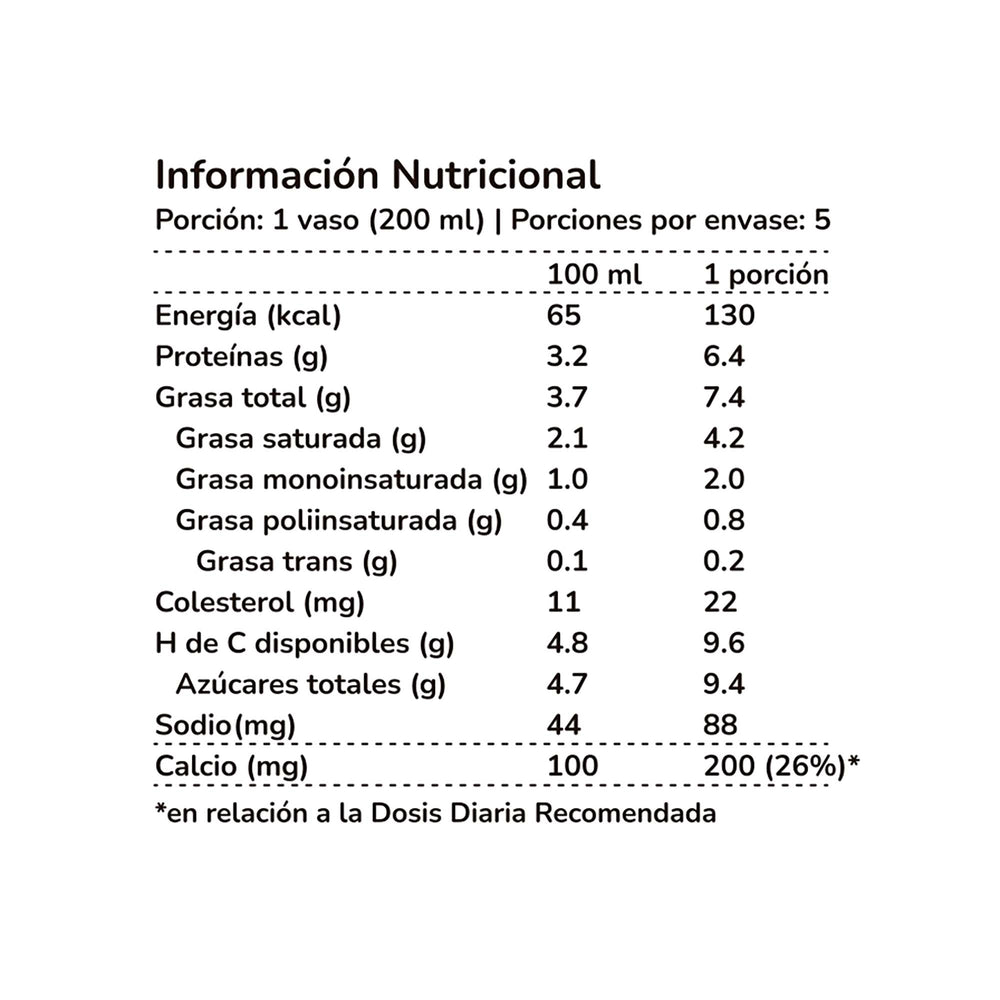 Leche 100% natural, es pasteurizada y está lista para consumir. La leche dura 7 días y debe mantenerse siempre refrigerada entre 2°C y 5°C. Una vez abierto el envase su duración es de 3 días.